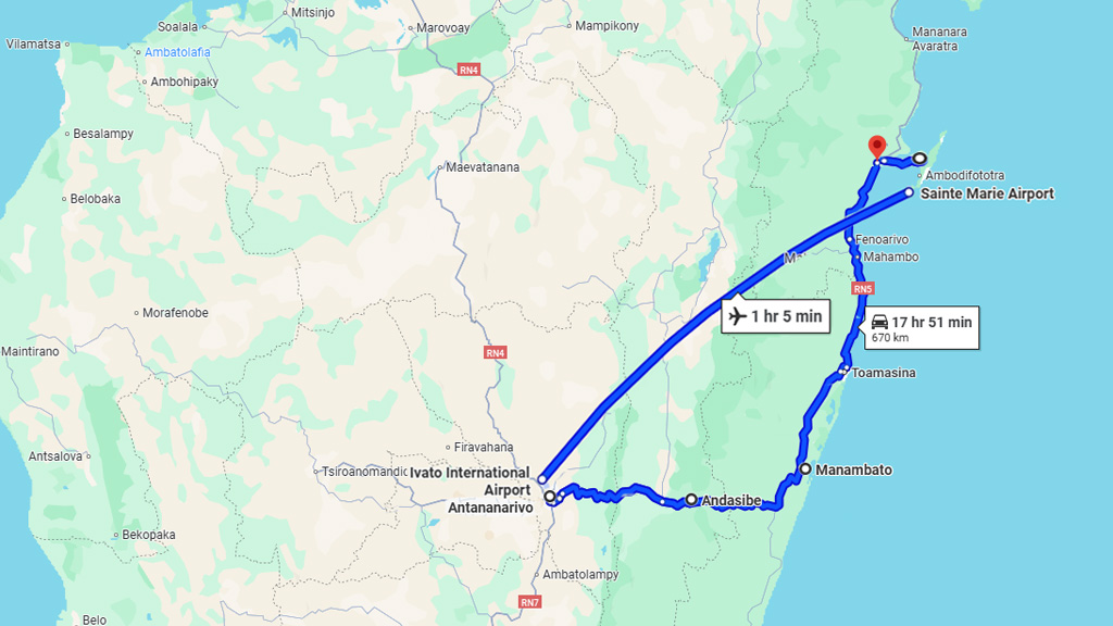 ANTANANARIVO - AMPEFY - ANDASIBE - MANAMBATO - ANKANIN’NY NOFY - MAHAMBO CANAL DE PANGALANE - SOANERENA IVONGO - TOAMASINA - SAINTE MARIE - ÎLE AUX NATTES